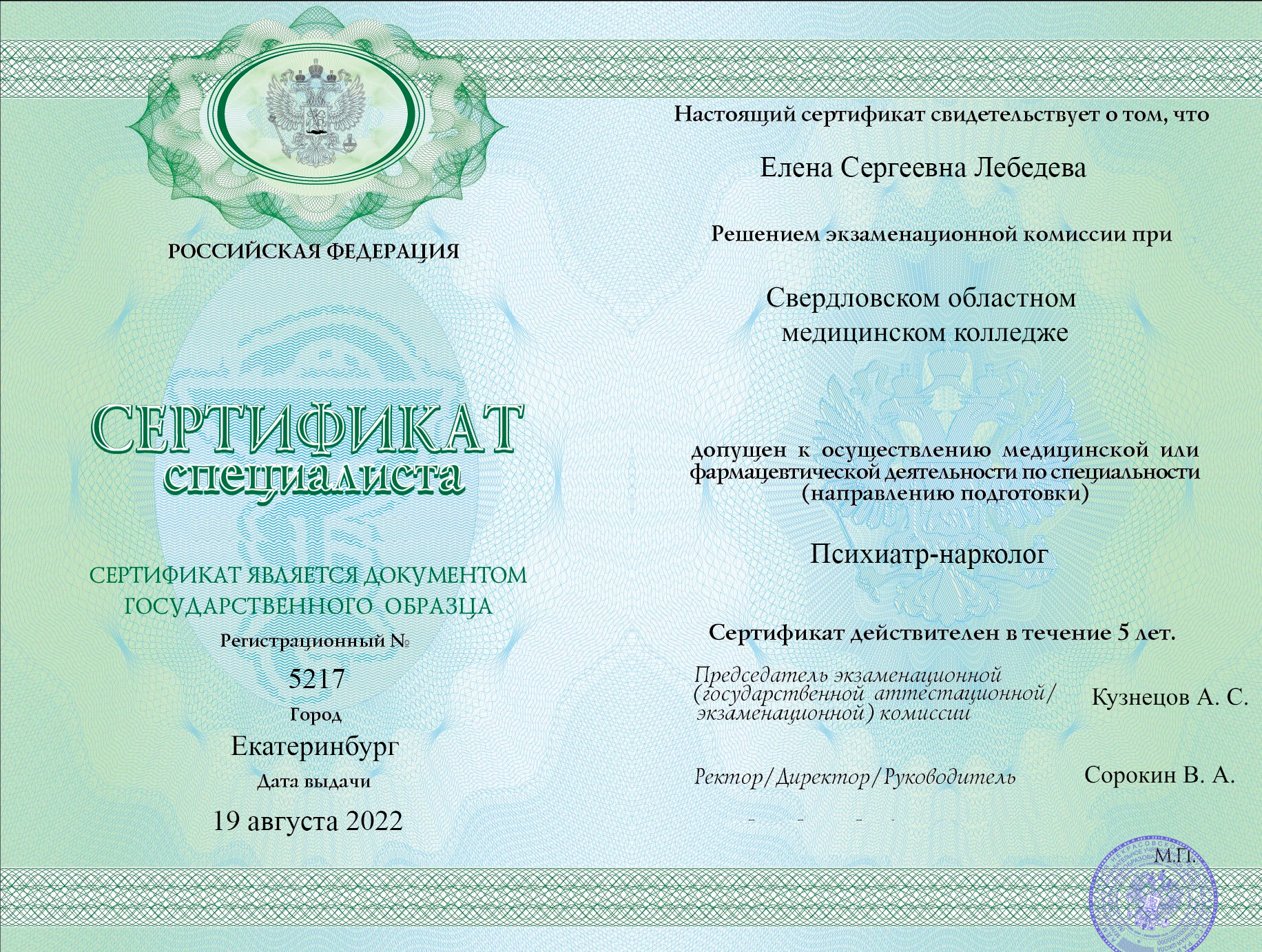 Елена Сергеевна Лебедева врач нарколог клиники доктора Стукаловой в Красноармейске Московская обл